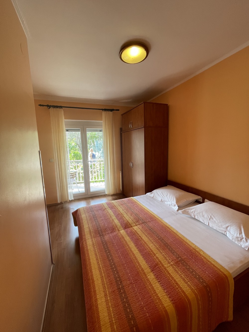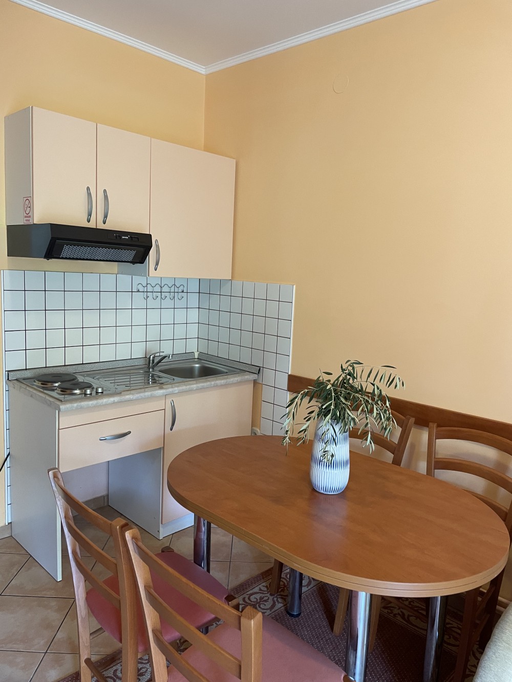 Questo appartamento è situato al piano terra e in se stesso ha una camera da letto con letti, un soggiorno con zona pranzo, mini-cucina e bagno.